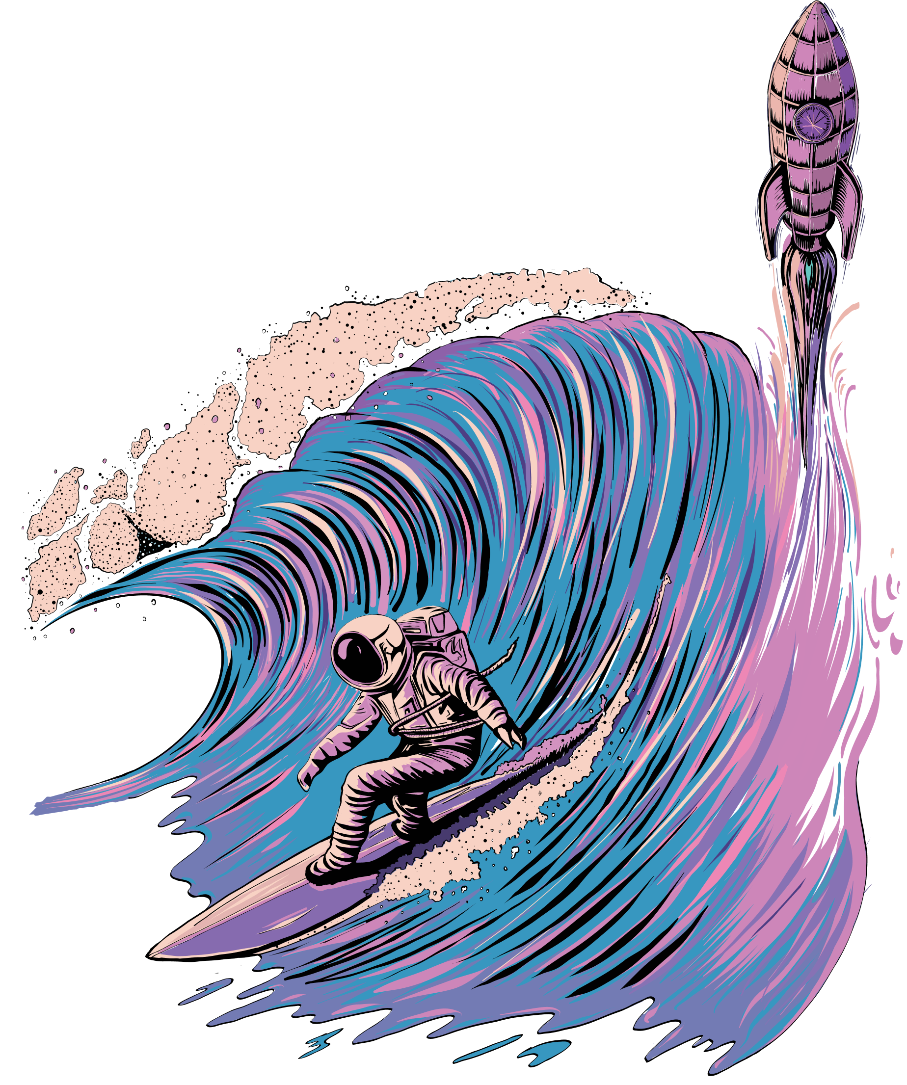 While I was moving through all of this — emotionally, physically, creatively — I made a painting called Untethered. You’ll see it plastered all over this article. An astronaut mid-ride, suspended in the chaos and beauty of the wave. It came straight from the part of me that needed healing. If it speaks to something in you, you can order a print on my Etsy shop and use code JUSTGOFORIT for 20 percent off this month.