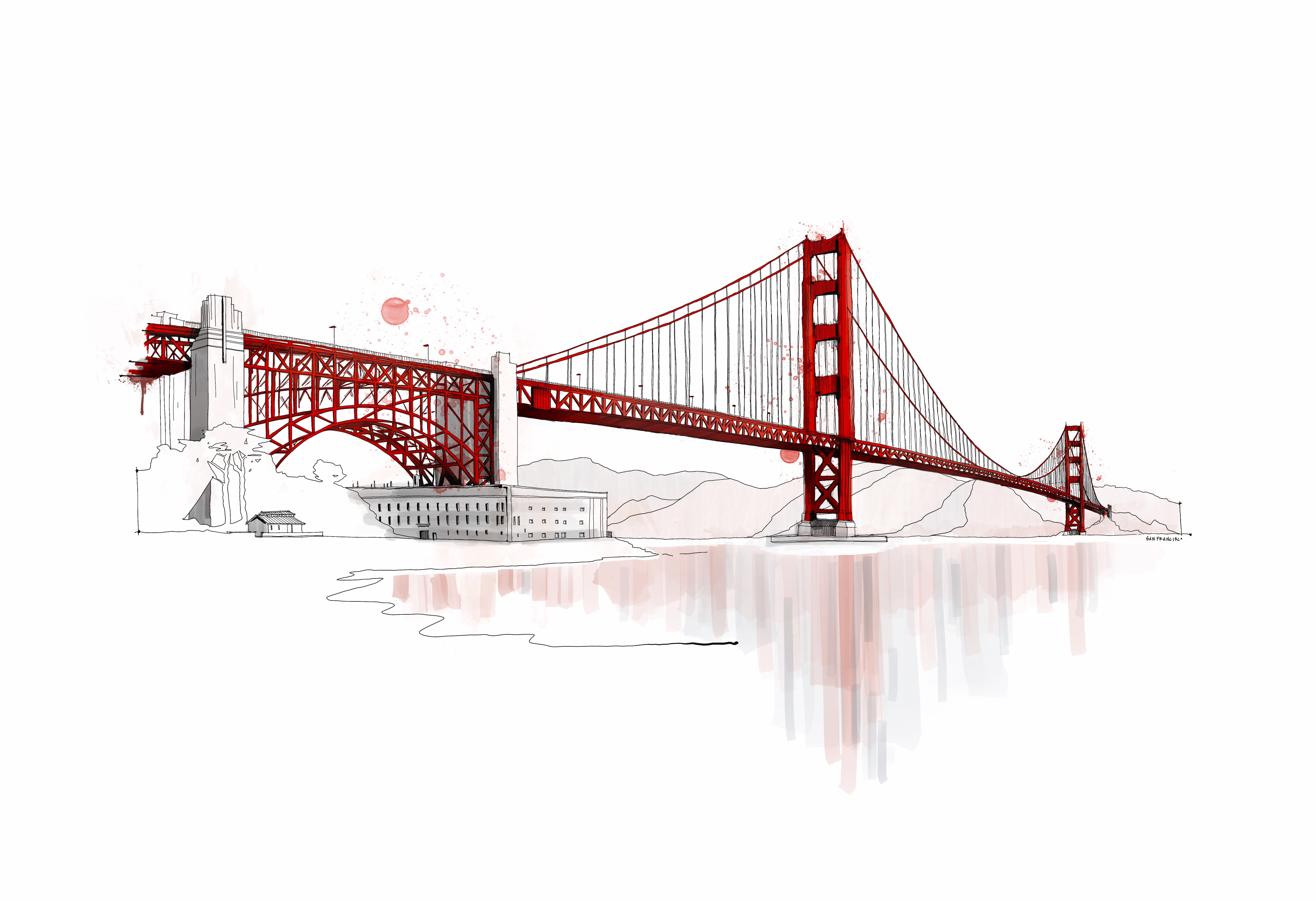Sketched from the Presidio and painted in watercolor and ink, Golden Gate Love is a hand-drawn San Francisco art print that captures one of the city’s most beloved landmarks wrapped in fog, sunlight, and memory. I’ve always been drawn to the quiet power of the bridge. The way it connects. The way it disappears and returns with the light. The way it holds both movement and calm in the same breath. I lived and worked in the Bay Area for seven years as an architect, sketching constantly during solo lunch breaks in the sun. This piece came from that season of life—warm, honest, spontaneous—filled with detail, structure, and heart. Perfect for anyone who loves San Francisco, west coast icons, or art that carries the feeling of place. 9" height x 12" width in an 11” height x 14” width mat board